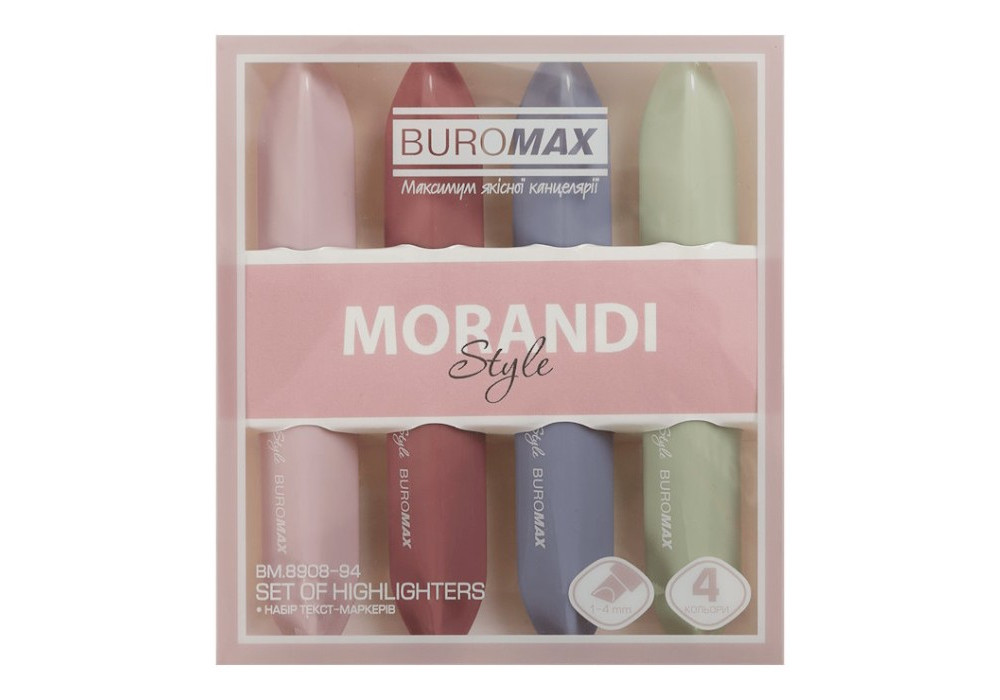 Набір маркерів текстових 4штBuromaxMORANDI STYLE(рожевий, бузковий, оливковий, графітовий)BM.8909-94