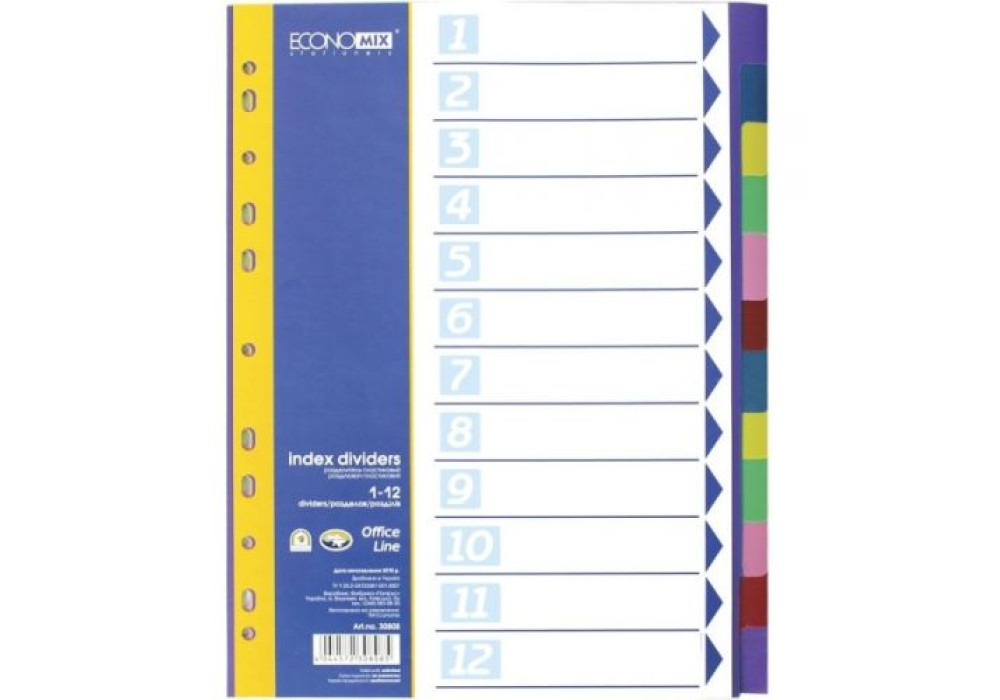 Розділювач пластиковий А4, 1-12, Economix 30808, 3926100000