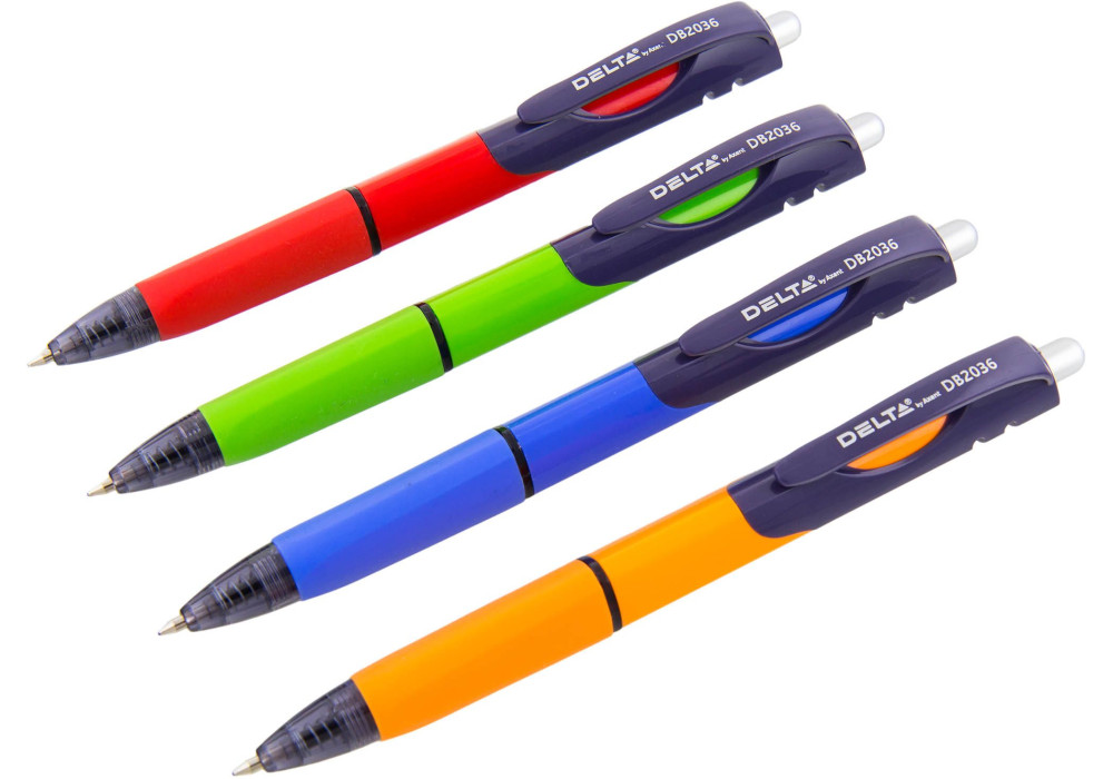 Ручка кулькова автоматична Delta DB2036 має тригранну форму корпусу і гумовий грип. Асортимент кольорів корпусу. Вузол 0,7 мм. Стержень DBR 2003. Довжина стержня 107 мм. Довжина написання 800 м.